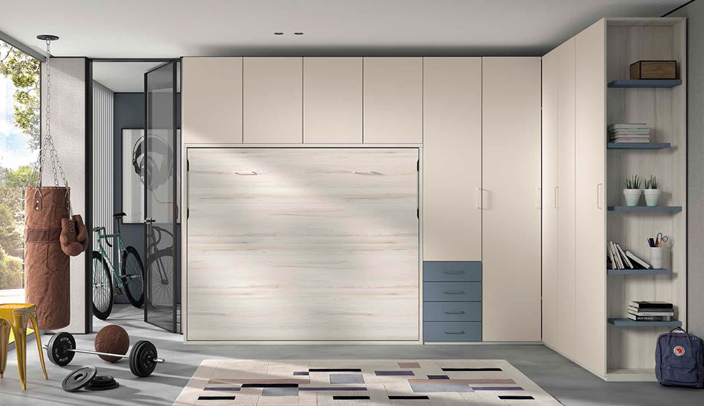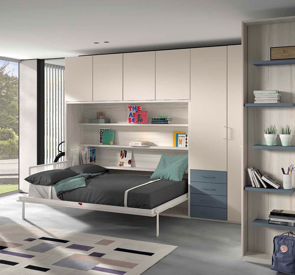 Cama de 150cm abatible horizontal con altillo, fondo 57 , con 20 colores para poder combinar