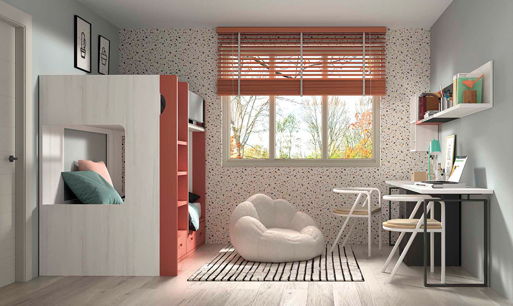 Cama litera bicolor con modulo 2 baules gran capacidad, quitamiedos y escalera incluida, con 20 colores para poder combinar