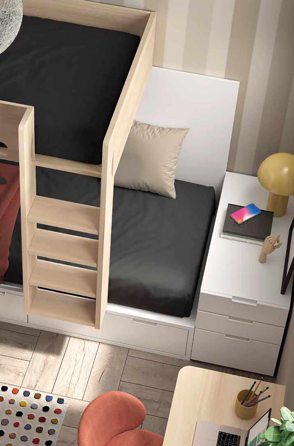Cama tren compacto con cajones
