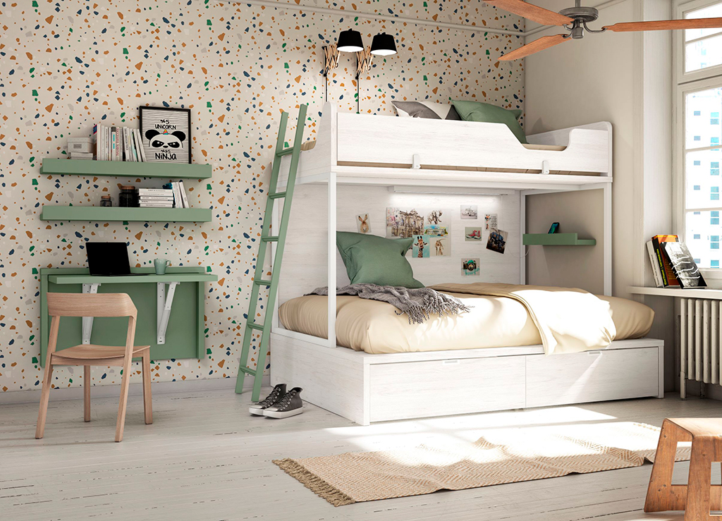 Litera 3 camas estructura metalica, una cama de 135cm, escalera inluido, con 20 colores a elegir