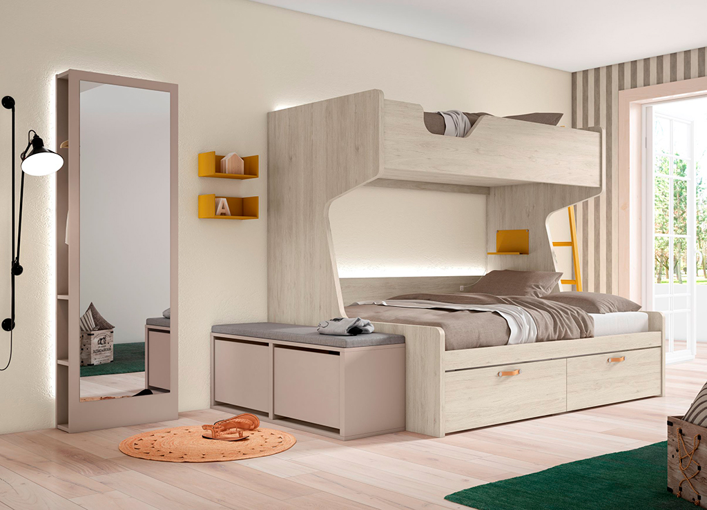 Litera con 3 camas, una de ellas de 135cm escalera y quitamiedos, 20 colores a elegir